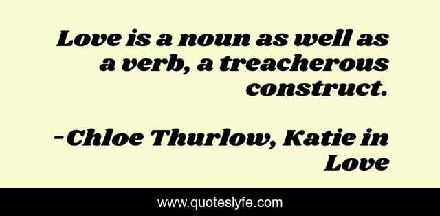 This page presents the quote "Love is a noun as well as a verb, a treacherous construct.". Author of this quote is Chloe Thurlow, Katie in Love. This quote is about love, affection, love-hurts,.