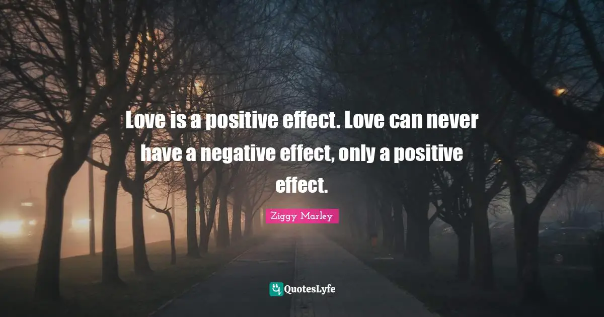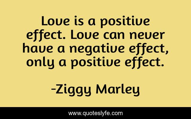 This page presents the quote "Love is a positive effect. Love can never have a negative effect, only a positive effect.". Author of this quote is Ziggy Marley. This quote is about love, negative, affection, love is,.