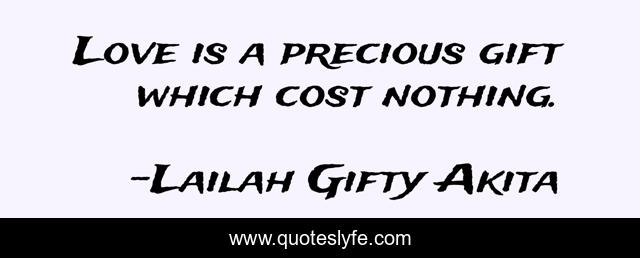 This page presents the quote "Love is a precious gift which cost nothing.". Author of this quote is Lailah Gifty Akita. This quote is about lovely, love, love-story, affection,.