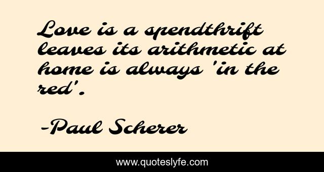 "Paul Scherer Quotes." Quoteslyfe.com, 2025. Sat. 06 Dec. 2025. <https://www.quoteslyfe.com/quote/Love-is-a-spendthrift-leaves-its-arithmetic-270187>.