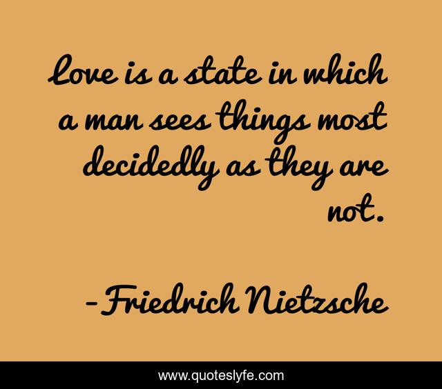 This page presents the quote "Love is a state in which a man sees things most decidedly as they are not.". Author of this quote is Friedrich Nietzsche. This quote is about love, affection,.