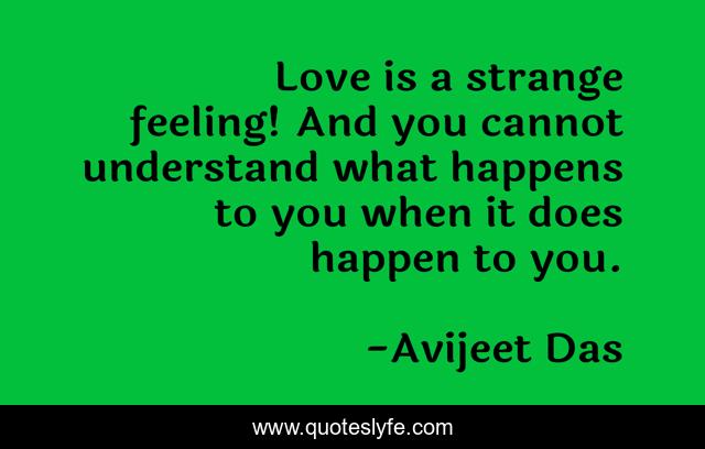 This page presents the quote "Love is a strange feeling! And you cannot understand what happens to you when it does happen to you.". Author of this quote is Avijeet Das. This quote is about love-and-sayings, valentines, feelings, love-is-all-you-need, meaning-of-love, meaning-of-life-is-relationships,.