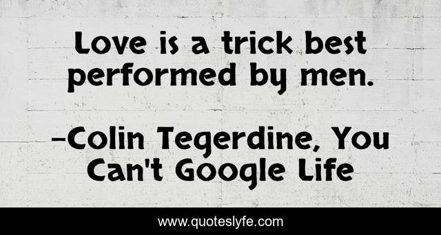 "Colin Tegerdine, You Can't Google Life Quotes." Quoteslyfe.com, 2025. Sat. 06 Dec. 2025. <https://www.quoteslyfe.com/quote/Love-is-a-trick-best-performed-by-18665>.