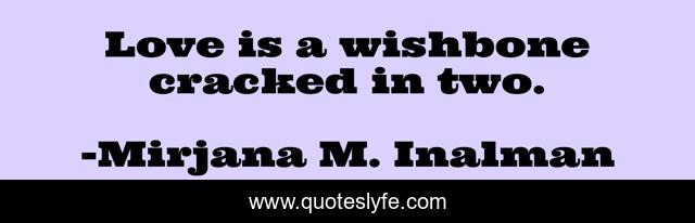 This page presents the quote "Love is a wishbone cracked in two.". Author of this quote is Mirjana M. Inalman. This quote is about love, emotions, affection, wishbone,.
