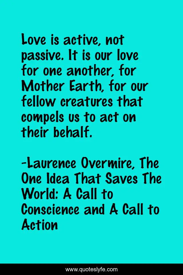 "Laurence Overmire, The One Idea That Saves The World: A Call to Conscience and A Call to Action Quotes." Quoteslyfe.com, 2025. Sat. 06 Dec. 2025. <https://www.quoteslyfe.com/quote/Love-is-active-not-passive-It-is-200773>.