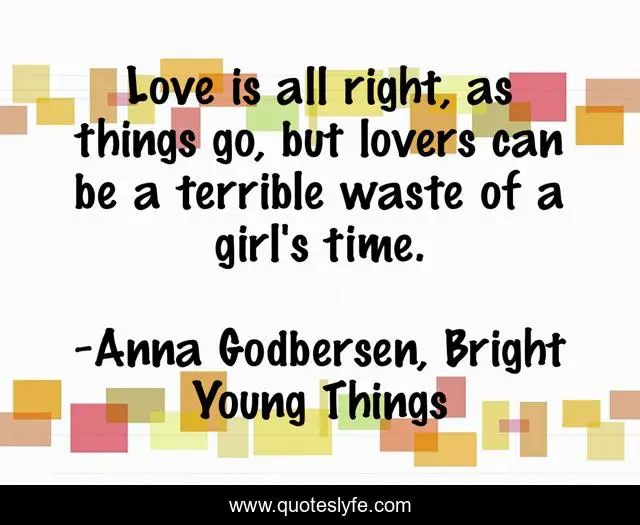 This page presents the quote "Love is all right, as things go, but lovers can be a terrible waste of a girl's time.". Author of this quote is Anna Godbersen, Bright Young Things. This quote is about girl, lovers, love, affection,.