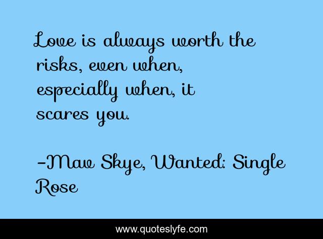 "Mav Skye, Wanted: Single Rose Quotes." Quoteslyfe.com, 2025. Fri. 05 Dec. 2025. <https://www.quoteslyfe.com/quote/Love-is-always-worth-the-risks-even-156222>.