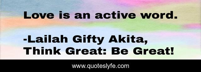 "Lailah Gifty Akita, Think Great: Be Great! Quotes." Quoteslyfe.com, 2025. Mon. 08 Dec. 2025. <https://www.quoteslyfe.com/quote/Love-is-an-active-word-85126>.