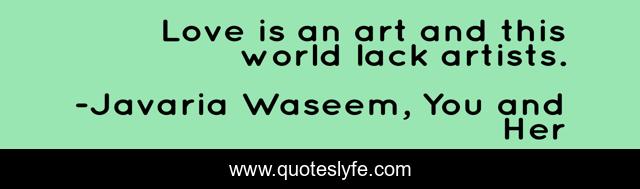 "Javaria Waseem, You and Her Quotes." Quoteslyfe.com, 2025. Fri. 05 Dec. 2025. <https://www.quoteslyfe.com/quote/Love-is-an-art-and-this-world-89459>.