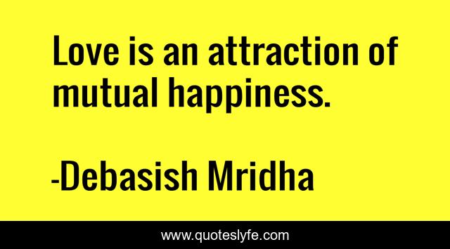 This page presents the quote "Love is an attraction of mutual happiness.". Author of this quote is Debasish Mridha. This quote is about life, love, knowledge, inspirational, intelligence, philosophy, wisdom, quotes, affection,.