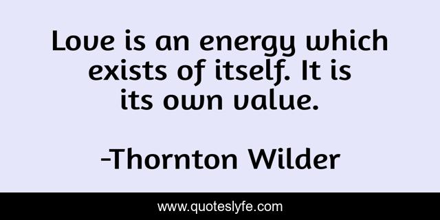 This page presents the quote "Love is an energy which exists of itself. It is its own value.". Author of this quote is Thornton Wilder. This quote is about energy, value, love is,.
