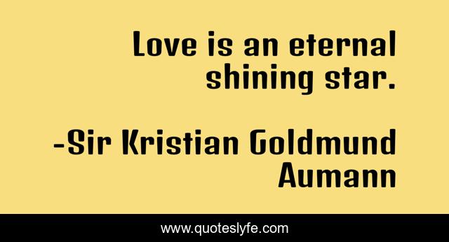 This page presents the quote "Love is an eternal shining star.". Author of this quote is Sir Kristian Goldmund Aumann. This quote is about love-and-sayings, shining-star,.