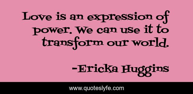 This page presents the quote "Love is an expression of power. We can use it to transform our world.". Author of this quote is Ericka Huggins. This quote is about love, power, social-change, change, transformation, affection,.