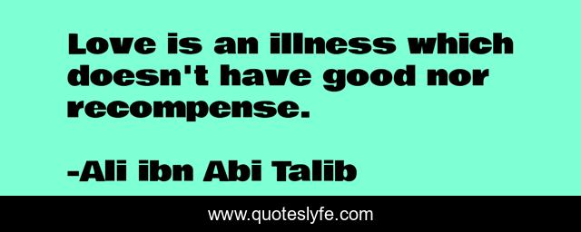 This page presents the quote "Love is an illness which doesn't have good nor recompense.". Author of this quote is Ali ibn Abi Talib. This quote is about illness, love, ali, lovers, affection, imam-ali,.