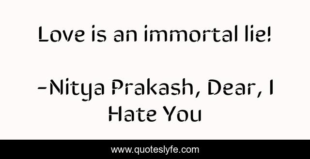 "Nitya Prakash, Dear, I Hate You Quotes." Quoteslyfe.com, 2025. Mon. 08 Dec. 2025. <https://www.quoteslyfe.com/quote/Love-is-an-immortal-lie-163673>.