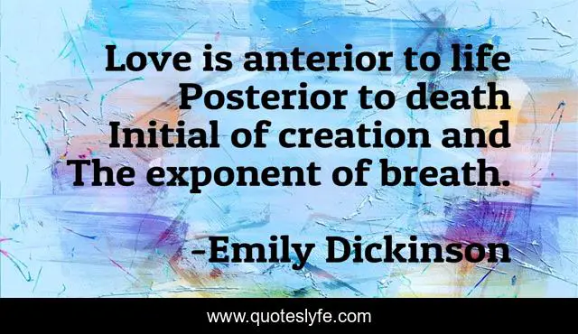 "Emily Dickinson Quotes." Quoteslyfe.com, 2025. Sun. 07 Dec. 2025. <https://www.quoteslyfe.com/quote/Love-is-anterior-to-life-Posterior-to-269791>.