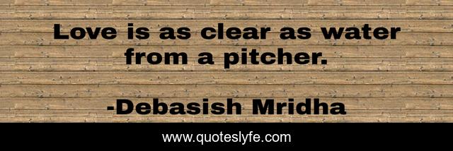 This page presents the quote "Love is as clear as water from a pitcher.". Author of this quote is Debasish Mridha. This quote is about life, love, knowledge, inspirational, intelligence, philosophy, wisdom, quotes, affection,.