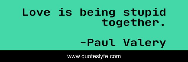 "Paul Valery Quotes." Quoteslyfe.com, 2026. Fri. 20 Mar. 2026. <https://www.quoteslyfe.com/quote/Love-is-being-stupid-together-287300>.