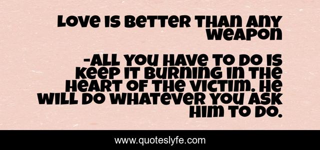 "all you have to do is keep it burning in the heart of the victim. He will do whatever you ask him to do. Quotes." Quoteslyfe.com, 2025. Fri. 05 Dec. 2025. <https://www.quoteslyfe.com/quote/Love-is-better-than-any-weapon-209671>.
