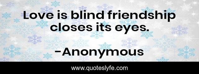 This page presents the quote "Love is blind friendship closes its eyes.". Author of this quote is Anonymous. .