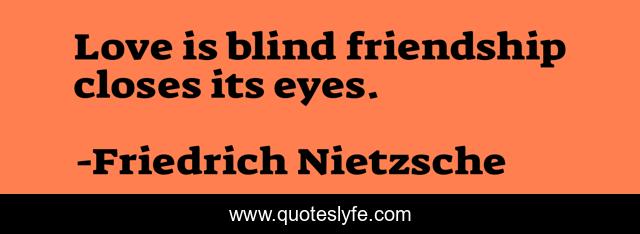 This page presents the quote "Love is blind friendship closes its eyes.". Author of this quote is Friedrich Nietzsche. This quote is about eyes, friendship, love is,.