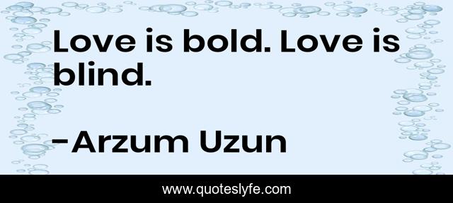 "Arzum Uzun Quotes." Quoteslyfe.com, 2025. Sun. 07 Dec. 2025. <https://www.quoteslyfe.com/quote/Love-is-bold-Love-is-blind-127994>.