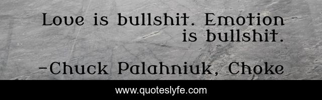 "Chuck Palahniuk, Choke Quotes." Quoteslyfe.com, 2025. Sat. 06 Dec. 2025. <https://www.quoteslyfe.com/quote/Love-is-bullshit-Emotion-is-bullshit-211538>.