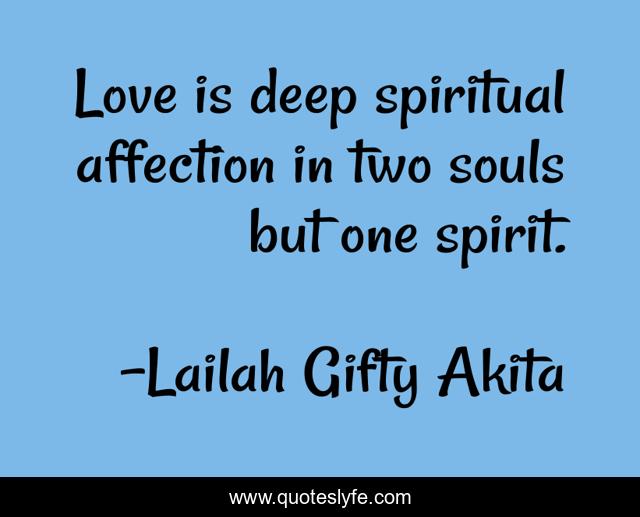This page presents the quote "Love is deep spiritual affection in two souls but one spirit.". Author of this quote is Lailah Gifty Akita. This quote is about inspiring, love, soul-mates, couples, marriage, christian, spirit, affection,.