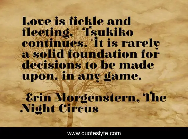 "Erin Morgenstern, The Night Circus Quotes." Quoteslyfe.com, 2025. Sat. 06 Dec. 2025. <https://www.quoteslyfe.com/quote/Love-is-fickle-and-fleeting-Tsukiko-continues-35065>.