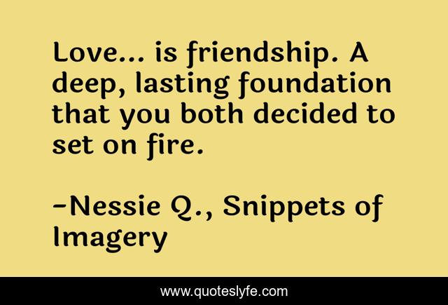 "Nessie Q., Snippets of Imagery Quotes." Quoteslyfe.com, 2025. Tue. 09 Dec. 2025. <https://www.quoteslyfe.com/quote/Love-is-friendship-A-deep-lasting-foundation-120667>.