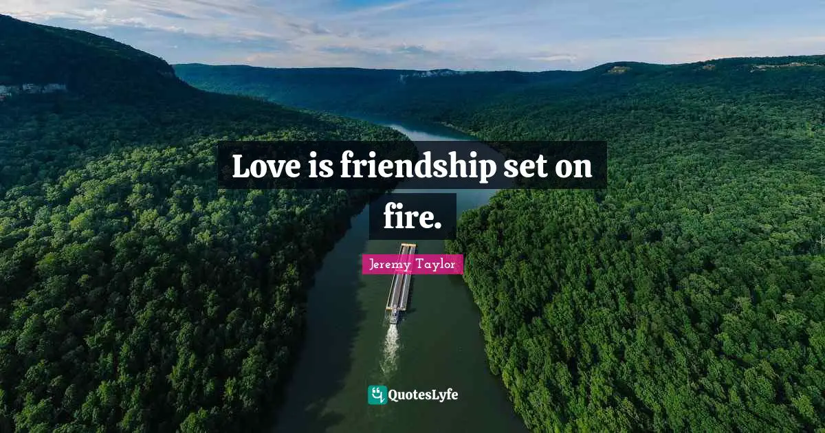 "Jeremy Taylor Quotes." Quoteslyfe.com, 2025. Mon. 08 Dec. 2025. <https://www.quoteslyfe.com/quote/Love-is-friendship-set-on-fire-286906>.