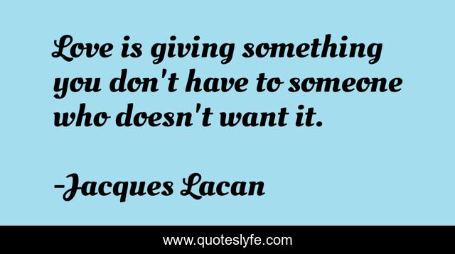 "Jacques Lacan Quotes." Quoteslyfe.com, 2025. Sun. 07 Dec. 2025. <https://www.quoteslyfe.com/quote/Love-is-giving-something-you-don-t-171557>.