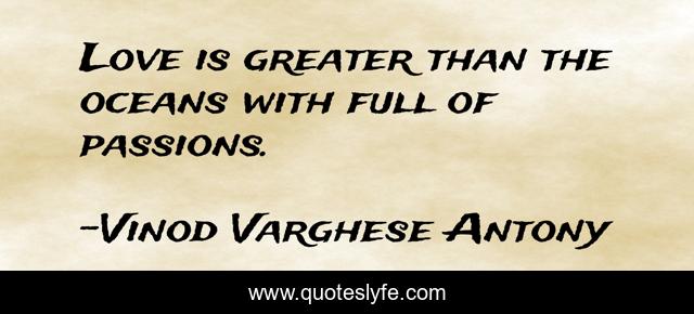 "Vinod Varghese Antony Quotes." Quoteslyfe.com, 2025. Fri. 05 Dec. 2025. <https://www.quoteslyfe.com/quote/Love-is-greater-than-the-oceans-with-181691>.