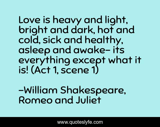 "William Shakespeare, Romeo and Juliet Quotes." Quoteslyfe.com, 2025. Sat. 06 Dec. 2025. <https://www.quoteslyfe.com/quote/Love-is-heavy-and-light-bright-and-406>.