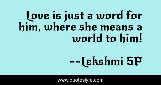 This page presents the quote "Love is just a word for him, where she means a world to him!". Author of this quote is -Lekshmi SP. This quote is about love, affection,.