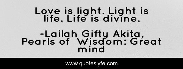 "Lailah Gifty Akita, Pearls of Wisdom: Great mind Quotes." Quoteslyfe.com, 2025. Sat. 06 Dec. 2025. <https://www.quoteslyfe.com/quote/Love-is-light-Light-is-life-Life-85391>.