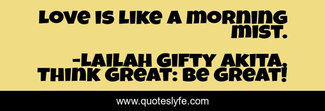 "Lailah Gifty Akita, Think Great: Be Great! Quotes." Quoteslyfe.com, 2025. Sat. 06 Dec. 2025. <https://www.quoteslyfe.com/quote/Love-is-like-a-morning-mist-172873>.