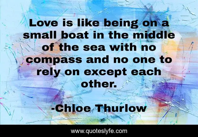 This page presents the quote "Love is like being on a small boat in the middle of the sea with no compass and no one to rely on except each other.". Author of this quote is Chloe Thurlow. This quote is about lovers, love, affection, loving,.