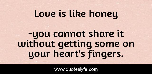 This page presents the quote "Love is like honey". Author of this quote is you cannot share it without getting some on your heart's fingers.. .