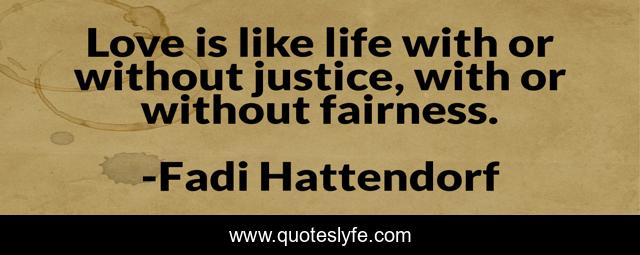 This page presents the quote "Love is like life with or without justice, with or without fairness.". Author of this quote is Fadi Hattendorf. This quote is about life, love, justice, courage, inspirational, fairness, enthusiasm, affection,.