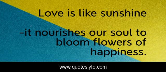 This page presents the quote "Love is like sunshine". Author of this quote is it nourishes our soul to bloom flowers of happiness.. .