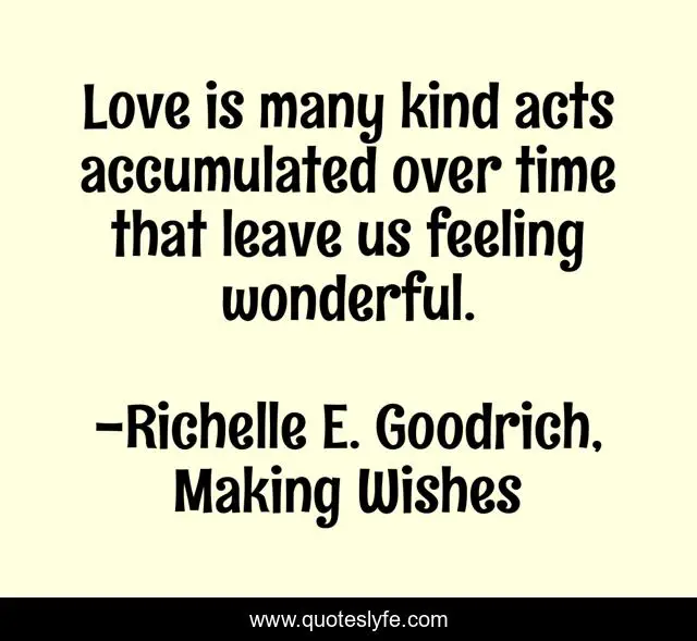 "Richelle E. Goodrich, Making Wishes Quotes." Quoteslyfe.com, 2025. Sat. 06 Dec. 2025. <https://www.quoteslyfe.com/quote/Love-is-many-kind-acts-accumulated-over-136626>.