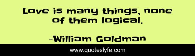 This page presents the quote "Love is many things, none of them logical.". Author of this quote is William Goldman. This quote is about love, affection, logic,.