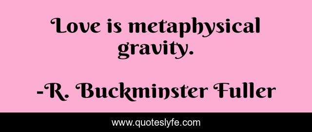 This page presents the quote "Love is metaphysical gravity.". Author of this quote is R. Buckminster Fuller. This quote is about gravity, love is,.