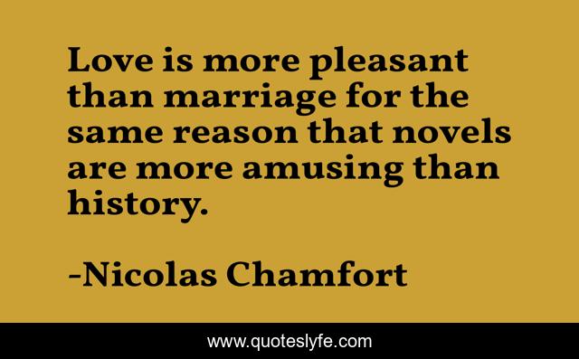 This page presents the quote "Love is more pleasant than marriage for the same reason that novels are more amusing than history.". Author of this quote is Nicolas Chamfort. This quote is about love, marriage, affection, love is,.