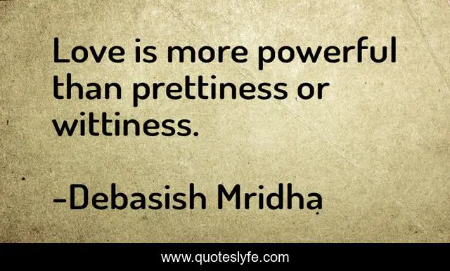 "Debasish Mridha Quotes." Quoteslyfe.com, 2025. Fri. 05 Dec. 2025. <https://www.quoteslyfe.com/quote/Love-is-more-powerful-than-prettiness-or-69886>.