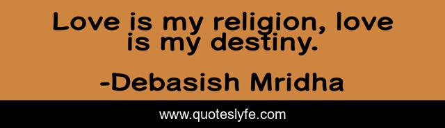 This page presents the quote "Love is my religion, love is my destiny.". Author of this quote is Debasish Mridha. This quote is about life, love, knowledge, inspirational, intelligence, philosophy, wisdom, quotes, affection,.