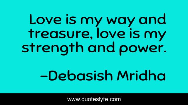 This page presents the quote "Love is my way and treasure, love is my strength and power.". Author of this quote is Debasish Mridha. This quote is about debasish, love, mridha, philosophy, debasish-mridha, love-is-my-strength, treasure, strength-and-power, affection,.