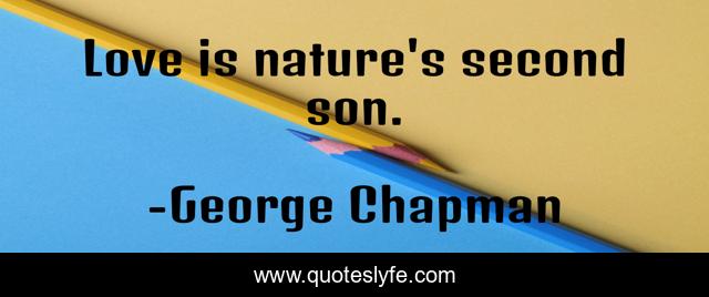 This page presents the quote "Love is nature's second son.". Author of this quote is George Chapman. This quote is about love, affection,.