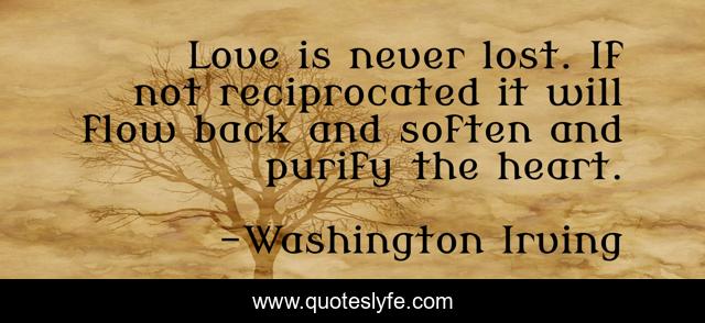 This page presents the quote "Love is never lost. If not reciprocated it will flow back and soften and purify the heart.". Author of this quote is Washington Irving. .